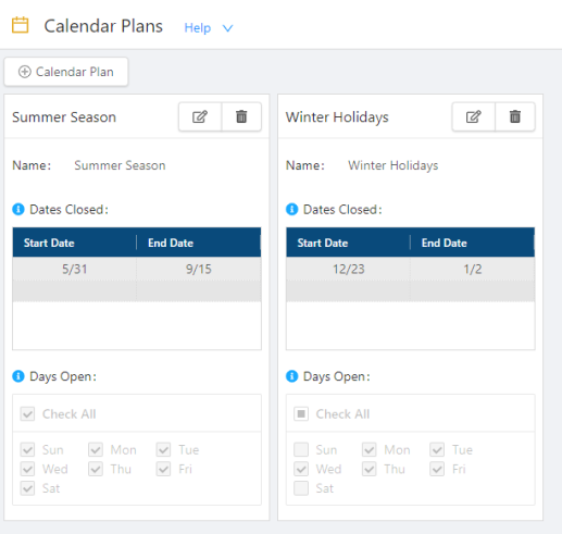 Some configuration screens contain multiple cards for each configured item. Each item can be edited or deleted directly from the card.