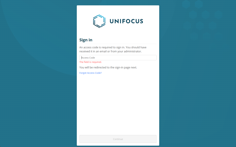 If you are signing in for the first time, enter your Access Code and select Continue.